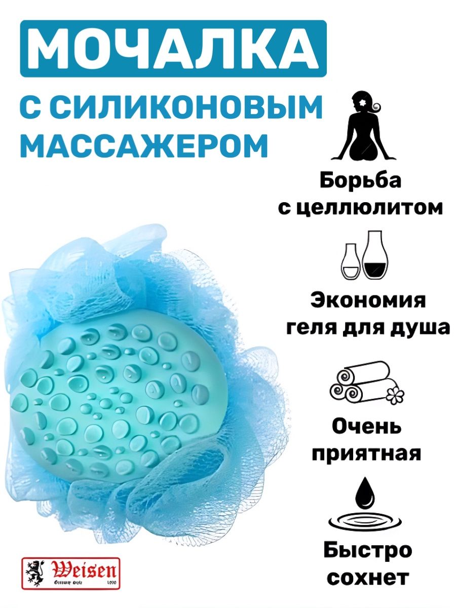 —Мочалка для тела Weisen G0220003 Blue, с массажёром