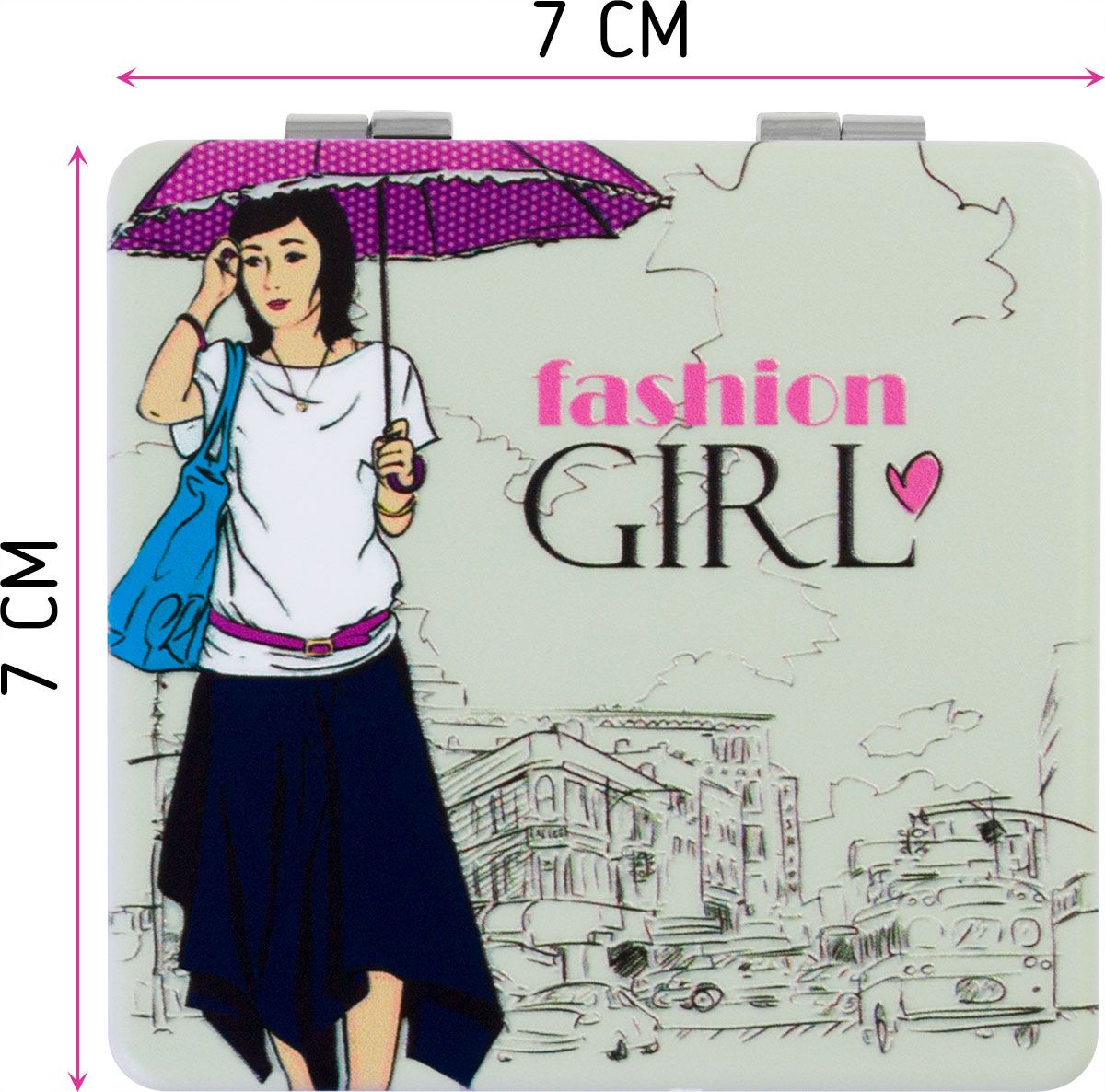 Зеркала компактное изготовлено из качественного, рельефного пластика, приятного на ощупь. Одна сторона двойного зеркальца имеет двукратное увеличение, вторая сторона - обычное зеркало.