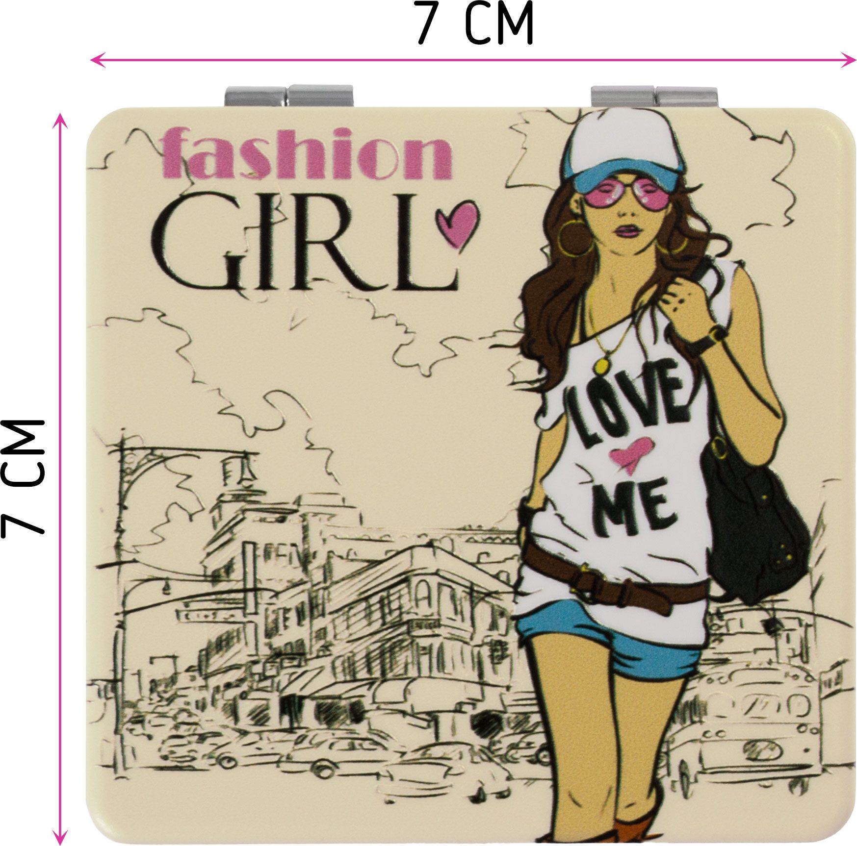 Зеркала компактное изготовлено из качественного, рельефного пластика, приятного на ощупь. Одна сторона двойного зеркальца имеет двукратное увеличение, вторая сторона - обычное зеркало.