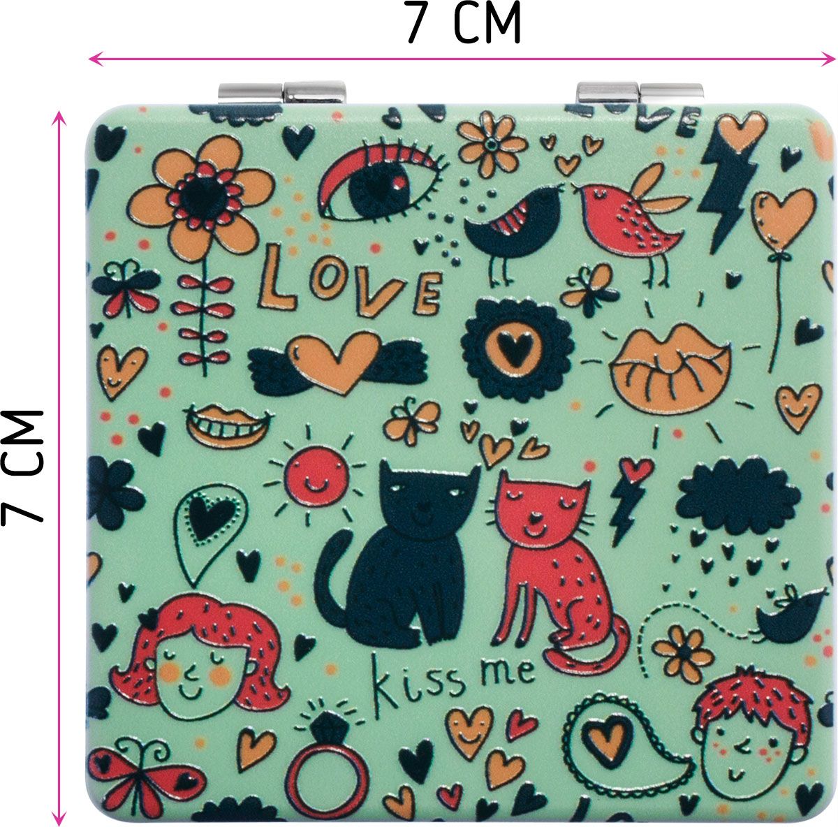 Серия "Котики". Зеркала компактное изготовлено из качественного, рельефного пластика, приятного на ощупь. Одна сторона двойного зеркальца имеет двукратное увеличение, вторая сторона - обычное зеркало.